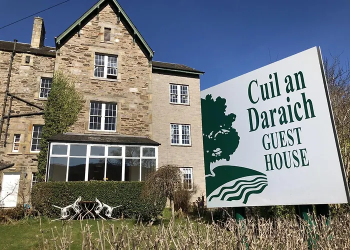 Cet hotel 3 étoiles est placé à environ 65 km de l'aéroport de Dundee et à 15 minutes en voiture de lieux culturels tels que le musée du Atholl Palace. Le mémorial de guerre et le jardin de Pitlochry se trouve également à 7 km de Cuil-An-Daraich Guest House de Pitlochry. Il faudra à 20 minutes en voiture pour rejoindre le jardin des explorateurs du théâtre de Pitlochry.